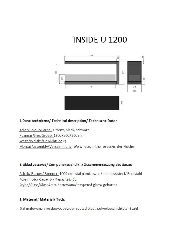 - Brûleur en acier inoxydable brossé de 3 mm d'épaisseur. À l'intérieur se trouve un noyau absorbant en fibre céramique. Le temps de combustion dépend de la taille et de la capacité du brûleur et de la ventilation de la pièce ainsi que de la taille de la flamme réglée