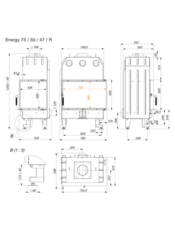Eckkamin rechts/links öffnend Energie 75x50x47 (15,1 kW) ECO