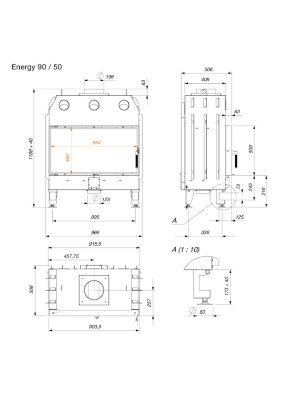 Einsatz für Holzkamin – Energy 90x50 (19,0 kW) ECO
