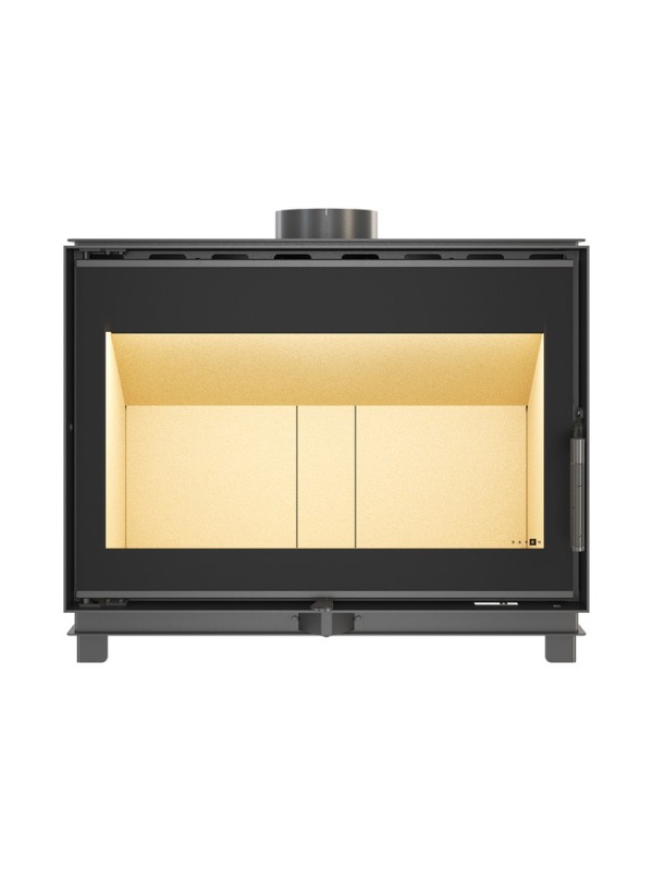 Kassetten-Kamineinsätze verfügen über nur einen Regler, der die Intensität der Verbrennung steuert. Darüber hinaus ist das Kamineinsatzsystem so konzipiert, dass das Gerät selbst den notwendigen Luftstrom auf verschiedene Teile verteilt: auf das Glas (um den Betrieb des „Clean Glass“-Systems zu gewährleisten) und im unteren Teil der Brennkammer (auf die Flamme).