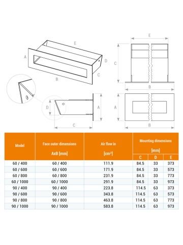 Das Kaminlüftungsgitter Loft ist ein modernes Element für Kamineinsätze und Öfen.