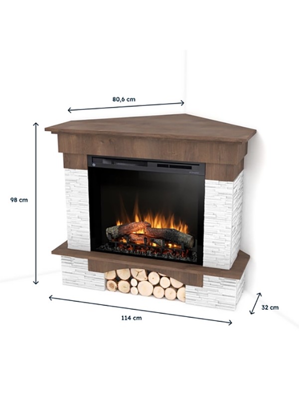 La chimenea Porto en versión rincón está diseñada en estilo rústico, creando un ambiente clásico, acogedor y seguro. El tablero de madera estampado y el marco rematado con una imitación de piedra blanca le dan a la chimenea un aspecto tradicional que encaja en cualquier interior. Para la construcción de la chimenea solo se utilizan paneles laminados de alta calidad de los mejores fabricantes. Lo más destacado de todo el proyecto es el inserto Dimplex XHD Optiflame, que es responsable de la representación extremadamente realista del efecto de llama. Las chimeneas modernas son una manera fácil de traer un ambiente inolvidable a su hogar.