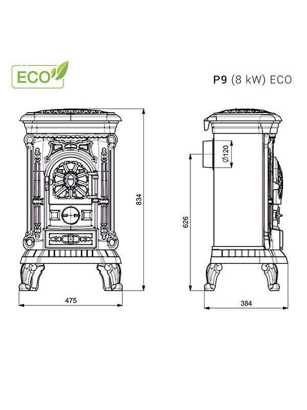 Estufa de hierro fundido de libre instalación - HARITA S15v ECO