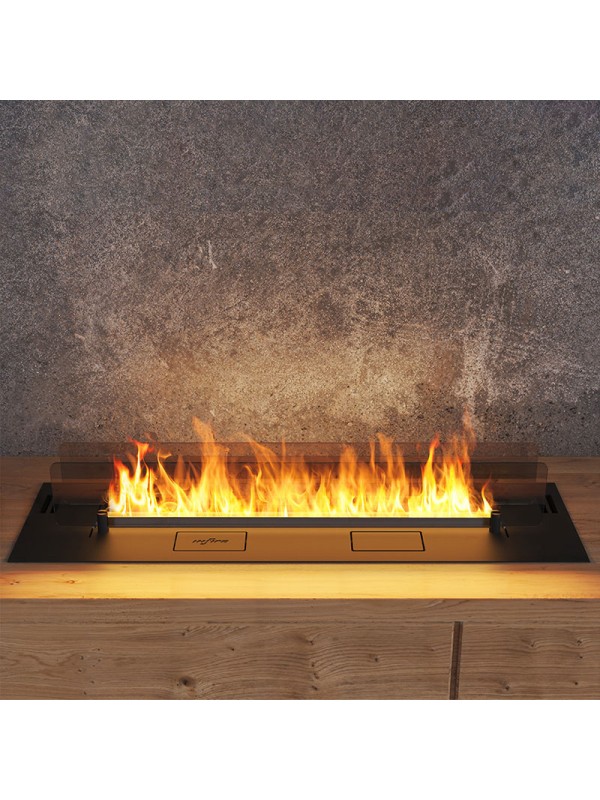 Le modèle BURNER BASIC permet également de régler la hauteur de la flamme sur deux niveaux, afin d'adapter son intensité à vos besoins, à la taille de la pièce ou à la puissance de chauffage souhaitée. Le contrôle s'effectue via des commandes intuitives intégrées au panneau ou via une télécommande, pour une utilisation simple et pratique. Un couvercle de protection en verre est également disponible en option. Il améliore l'esthétique du brûleur, stabilise la flamme et renforce la sécurité, ce qui est particulièrement utile dans les pièces fréquentées par des enfants ou des animaux domestiques. Apportez la magie du feu chez vous grâce à la simplicité d'une cheminée nouvelle génération. Des systèmes de sécurité intégrés garantissent l'arrêt automatique du brûleur en cas de problème. Par conséquent, il est 100 % sûr.