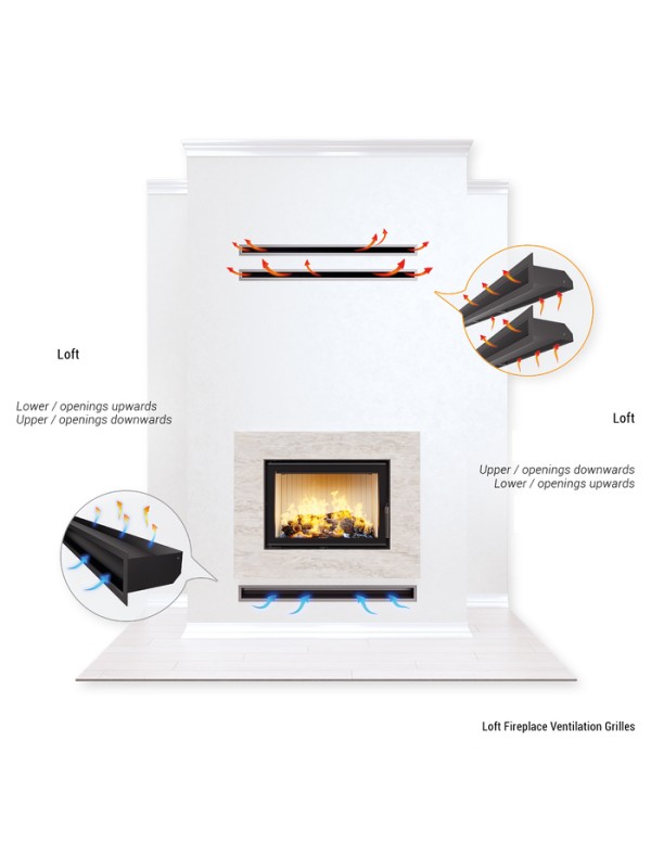 La griglia di ventilazione per camino Loft è un elemento moderno per inserti per caminetti e stufe.