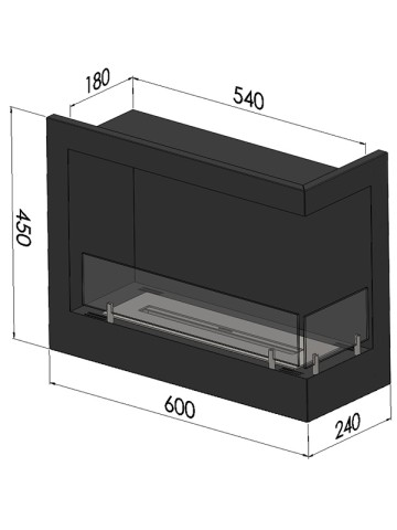 La cornice anteriore sottolinea delicatamente il suo design e lo rende adatto soprattutto ad interni moderni. Questo biocamino è verniciato con vernice termoresistente di colore nero opaco, nella parte posteriore si trovano appositi fori per fissarlo meglio al muro e nella spedizione sono inclusi i tasselli.
