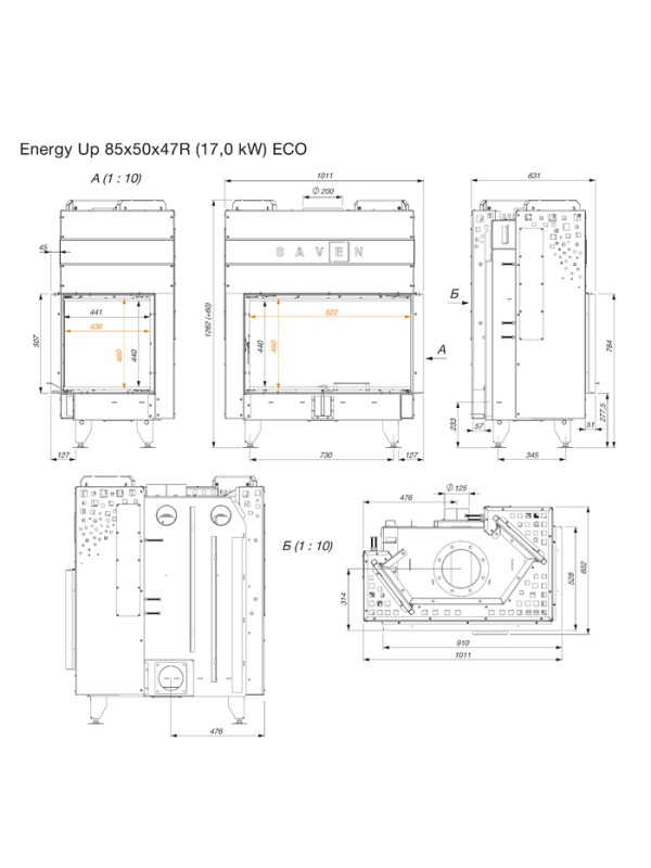 Termocamino ad angolo Apertura destra/sinistra Energy Up 85x50x47 (17,0 kW) ECO