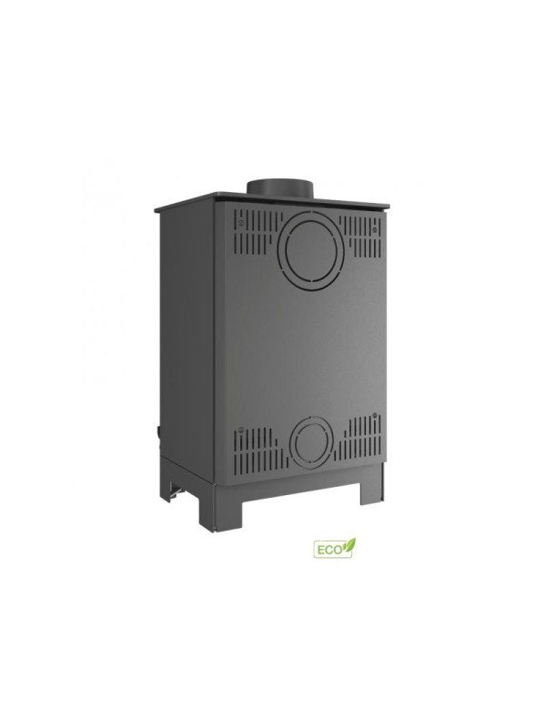 De kachelbehuizing is gemaakt van staal, wat zorgt voor een snellere opwarming en een lager houtverbruik.
