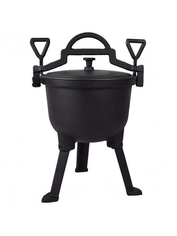 Traditionele Nederlandse gietijzeren pot. De Dutch oven wordt gebruikt om te koken, grillen, braden, koken, frituren, stomen en bakken. Ideaal voor barbecues, kampvuren en grills.