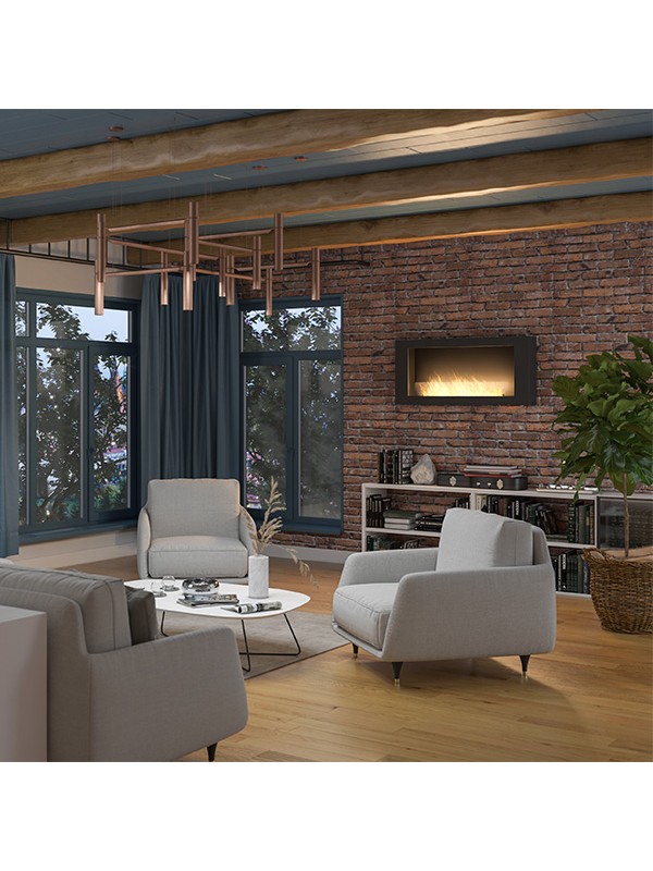 Built-in bio-fireplace FRAME 1500, single-sided wall-mounted bioethanol fireplace.