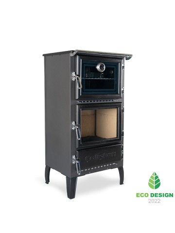 Cuptorul emailat, poziționat deasupra camerei de ardere, adaugă funcționalitate confortului, făcând din această sobă o piesă centrală a căldurii și tradiției. Glisorul său inteligent de ventilație a cuptorului asigură direcționarea mirosurilor alimentare direct prin conducta de fum, menținând aerul din bucătărie curat, în timp ce vasele se gătesc uniform datorită căldurii radiante.
