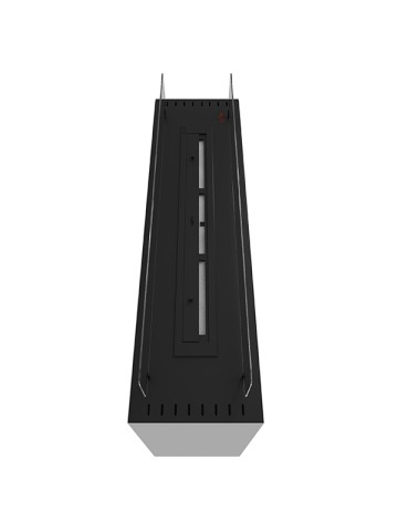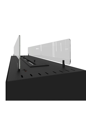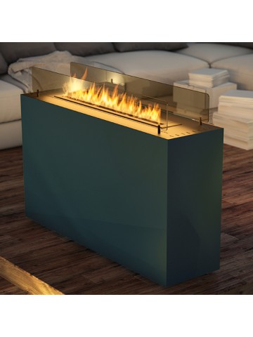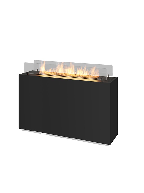 En högkvalitativ Inox Long 800-brännare, 80 cm lång, tillverkad av rostfritt stål, dekorerad med en borstad yta, används inuti bioeldstaden. Brännaren ger en effektiv och enhetlig eldlinje, vars höjd kan styras med en skjutdörr.