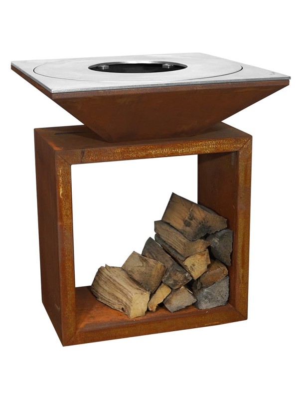 Eldgrop för trädgården, grill med wokhål, galler och lock - G8
